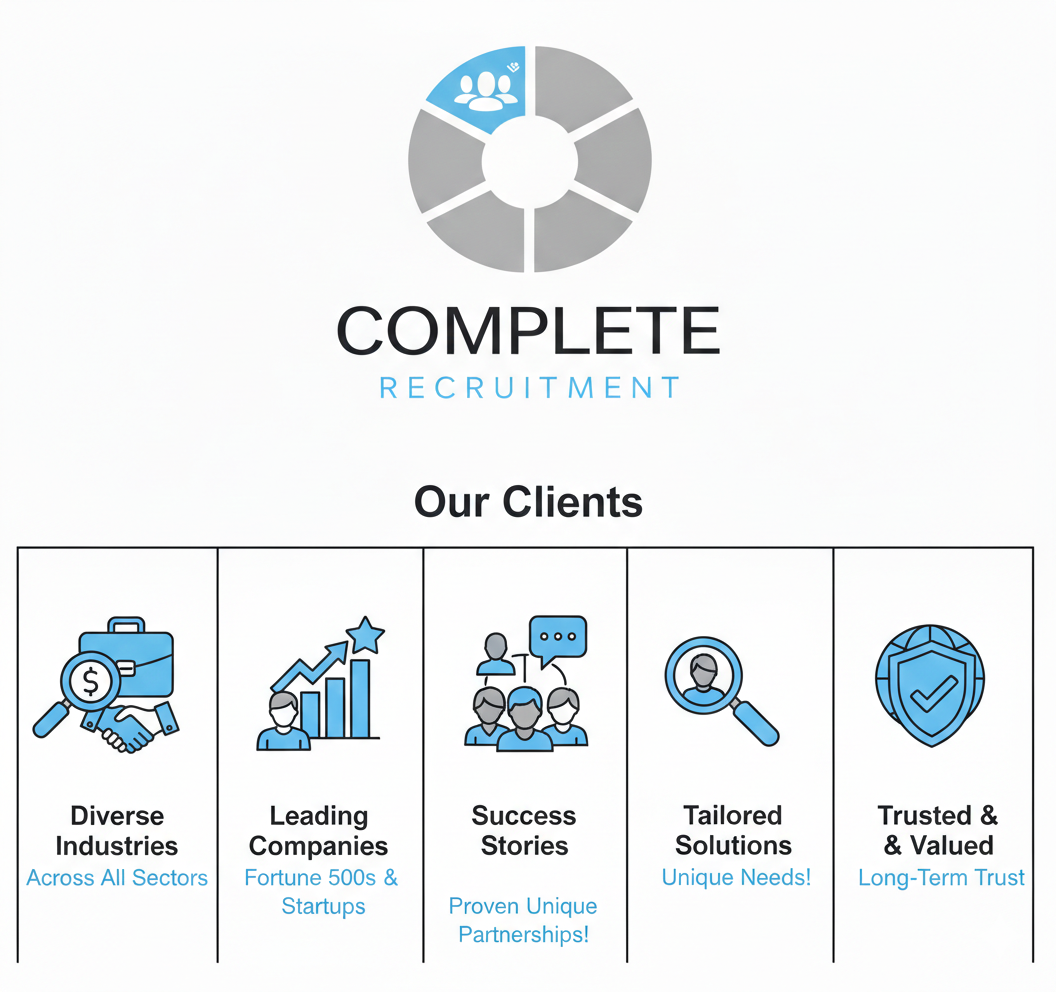 Complete Recruitment is proud to cater to the candidate needs of a variety of companies. Our clients are across various sectors of business within the UK. Our goal is to find the perfect client to fill whatever role you need.
